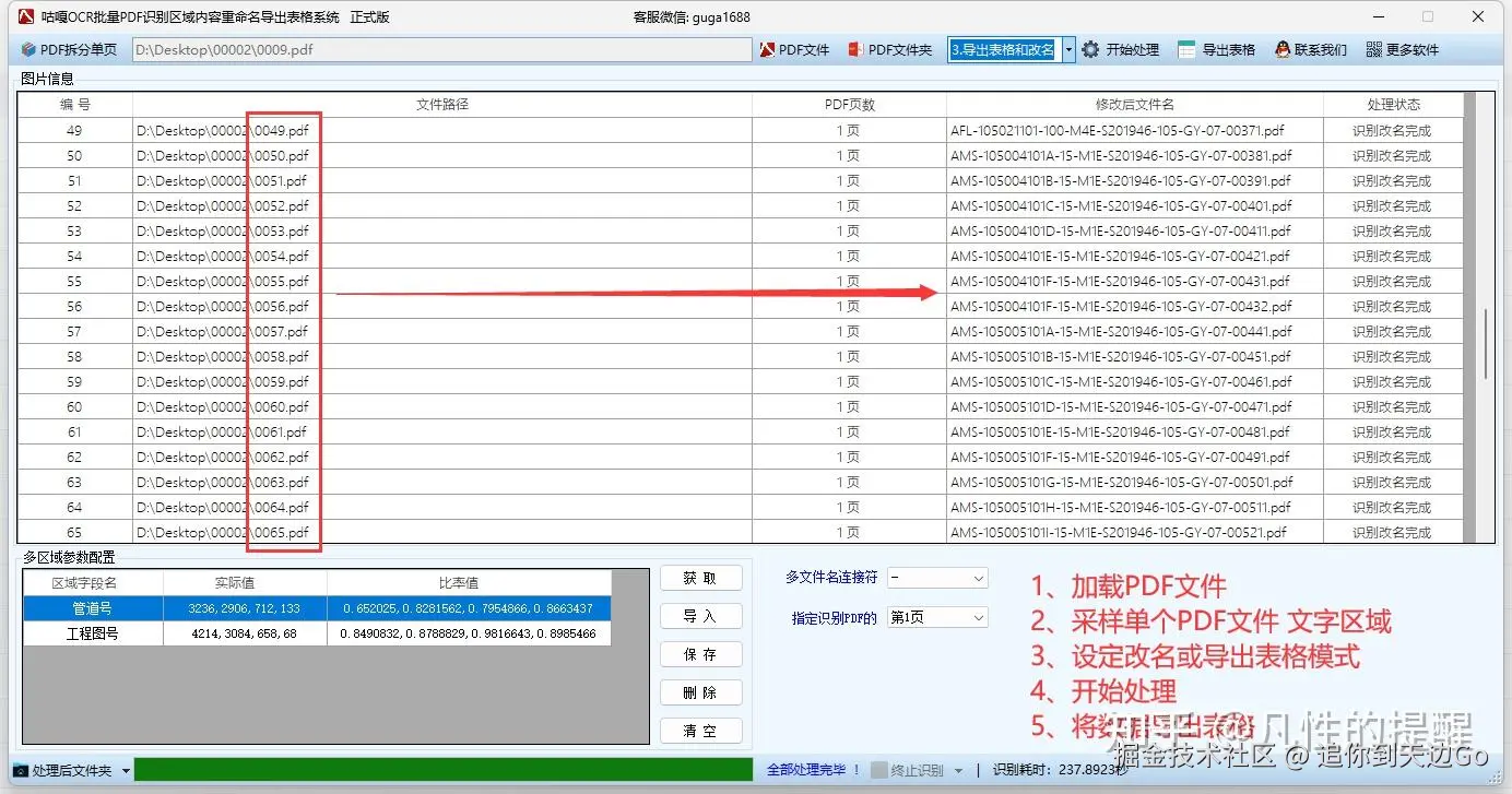 双击“咕嘎批量OCR识别图片PDF多区域内容重命名导出表格系统.exe”,无需安装,右键“以管理员身份运行”可避免权限报错。 - 选择处理模式图片(JPG/PNG/TIFF)→“图片处理模式”;扫描型PDF(含多页)→“PDF处理模式”;混合文件可分批处理。