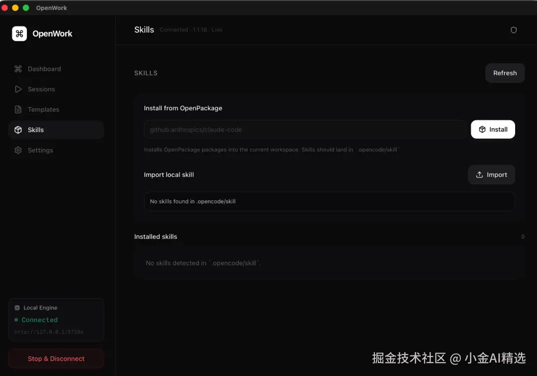 这意味着:OpenWork 不只是“壳”,它在认真把生态能力整合进产品层。