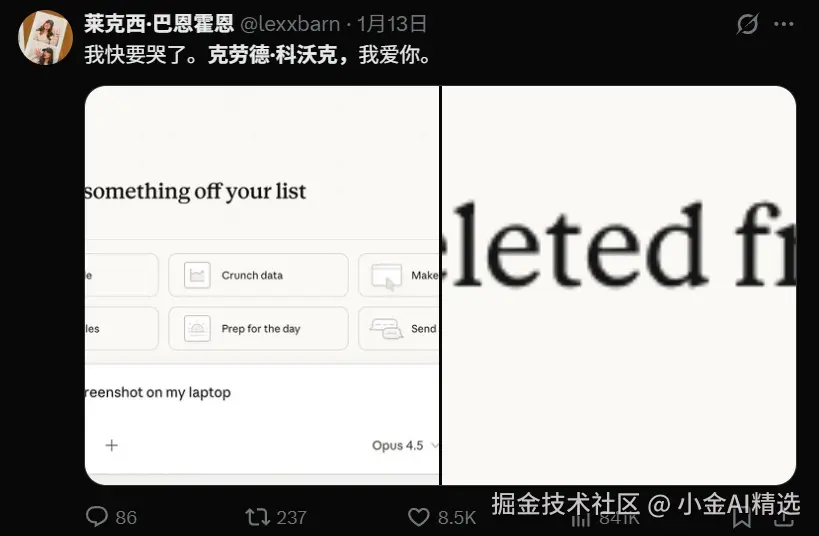 用过 Claude Work(Anthropic 的 AI 工作助手)的人,大多会对它的体验印象深刻:你不需要在终端里拼命记命令,也不必在一堆脚本输出里找线索——只要 选个工作区、下达任务,看着 AI 一步步执行;遇到敏感操作再 点一下授权。整个过程更像在使用一个“产品”,而不是“工具链”。