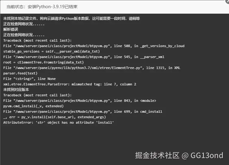 使用宝塔面板自带的网站->Python项目下载,发现报错: