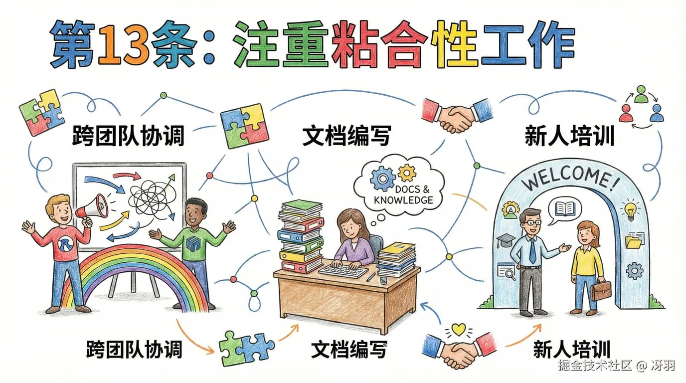 粘合性工作——例如写文档、帮新人上手、跨团队协调、流程优化——至关重要。