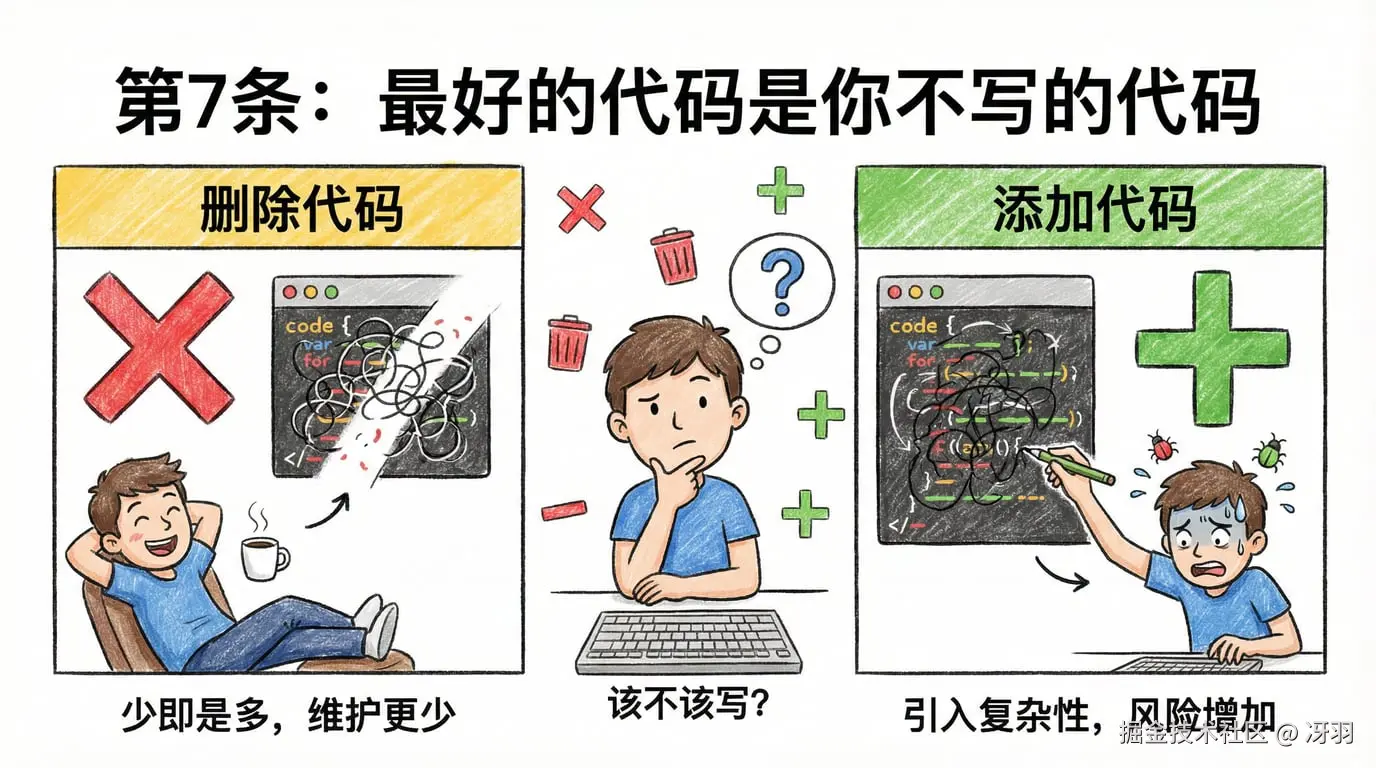 因为你不写的每一行代码,都意味着你永远不必调试、维护或解释。