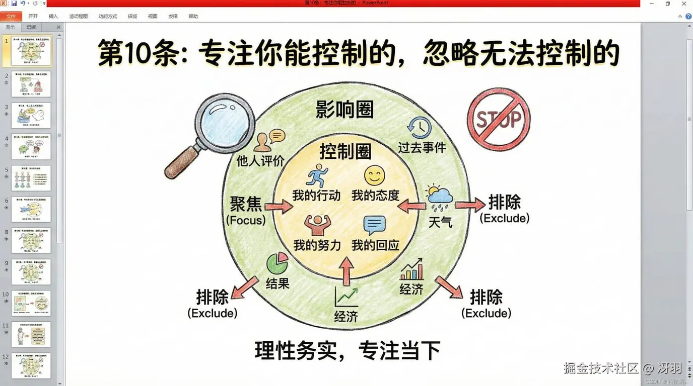 所以高效的工程师,会锁定自己的影响圈。你控制不了是否会重组,但你能控制工作质量、如何应对、学到什么。
