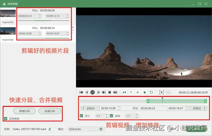录制完成自动进入预览,若视频效果不满意,可通过下方 【高级剪辑】 工具做删除、分段、加特效等后期处理。