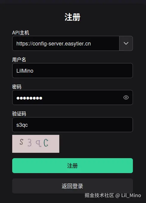 创建账户:easytier.cn/web#/auth/r… LilMino 为例