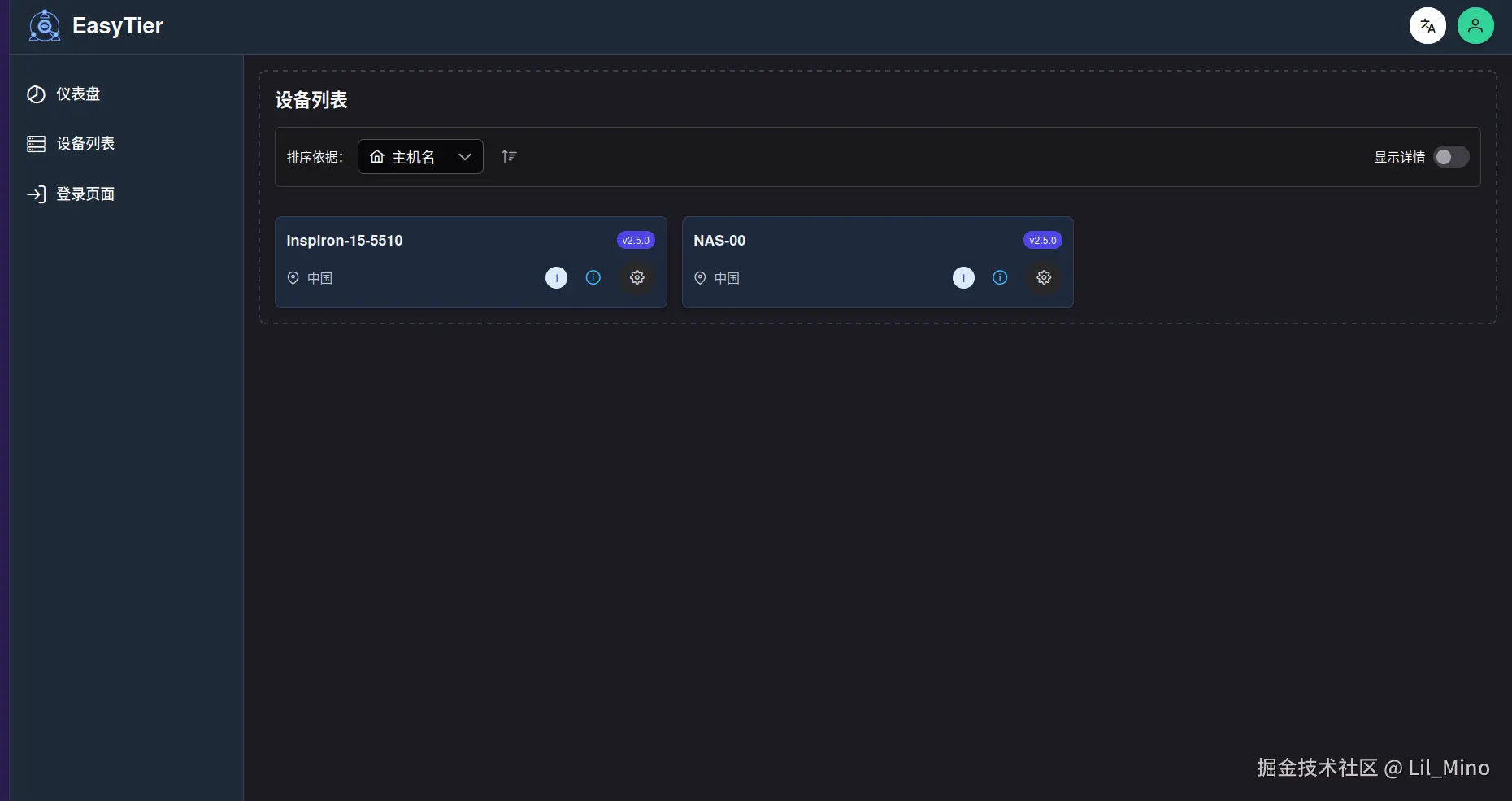 Web 控制台中查看设备列表:easytier.cn/web#/auth