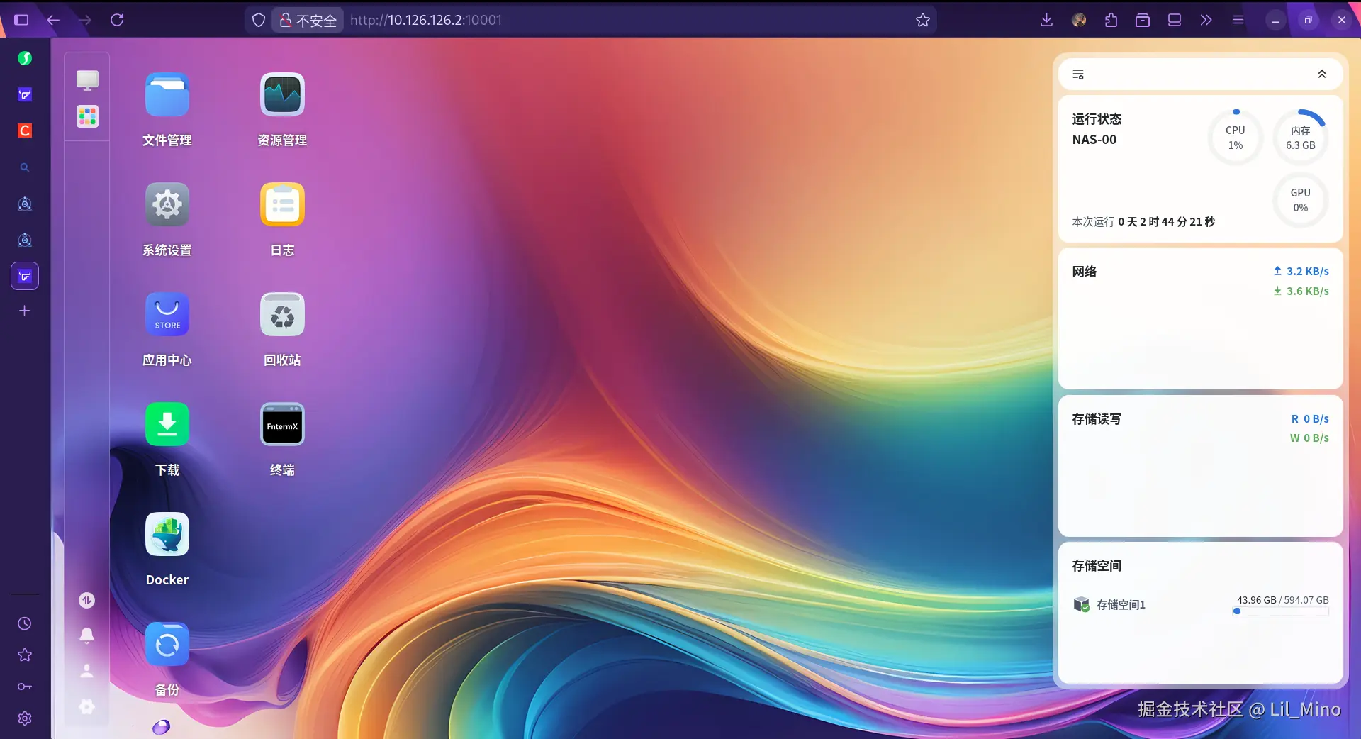 例:在 Ubuntu 设备的浏览器中输入 NAS 的虚拟地址和端口: