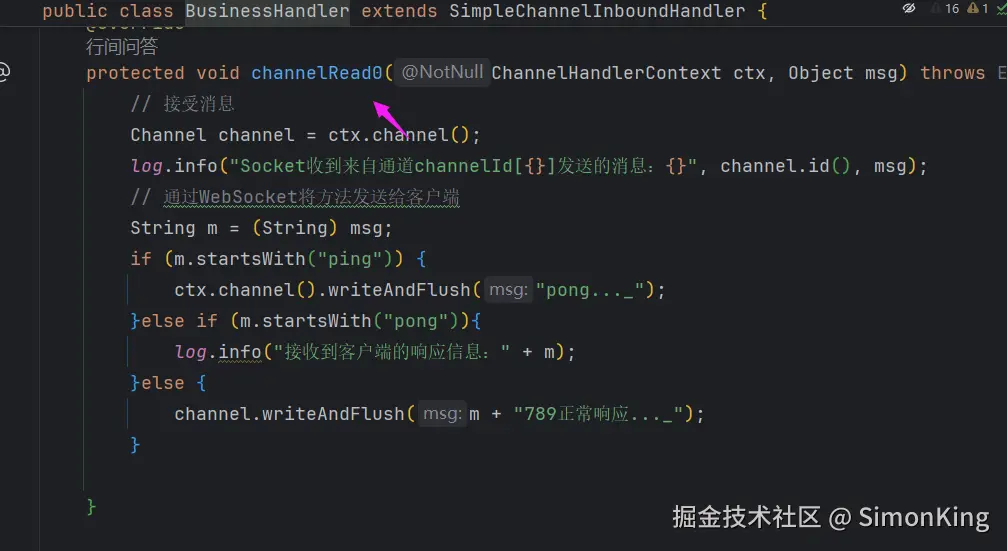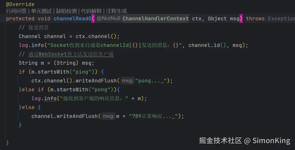 客户端比较简单,接收到心跳消息,响应一下就好了。