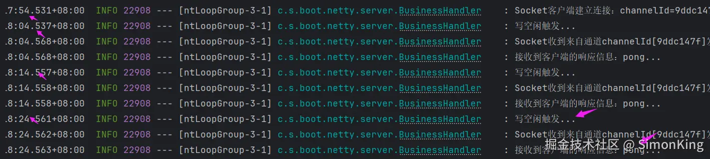 我们可以看到10s未写,则会触发写空闲,从而发送心跳。