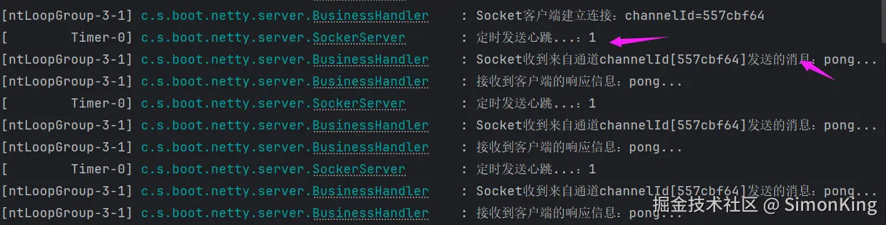 上面只是简单的通过案例介绍了心跳的发送,在实际的应用中,我们需要定义消息的类型,通过类型判断是否为心跳消息,从而区分业务消息和心跳消息。还要考虑如果心跳没有被回应,需要考虑删除连接等操作。