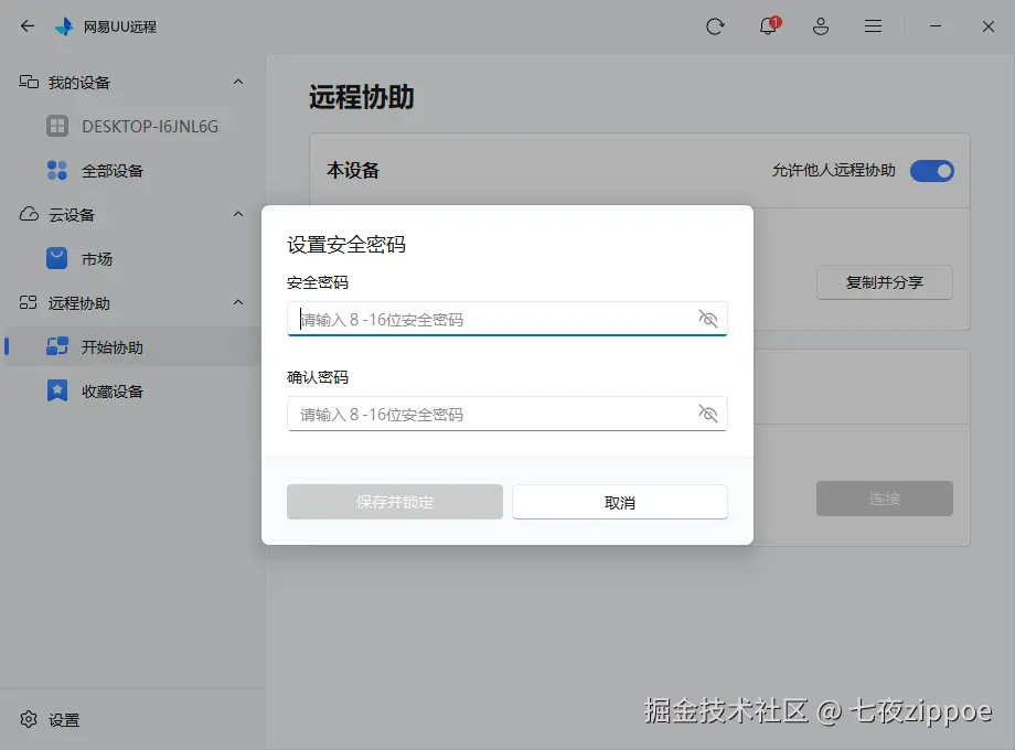核心作用: 开启远程协助后,被控端可以锁定自己的UU客户端界面。锁定后,被控方无法进行“断开连接”、“修改设置”等敏感操作,有效防止误触导致的协助中断。