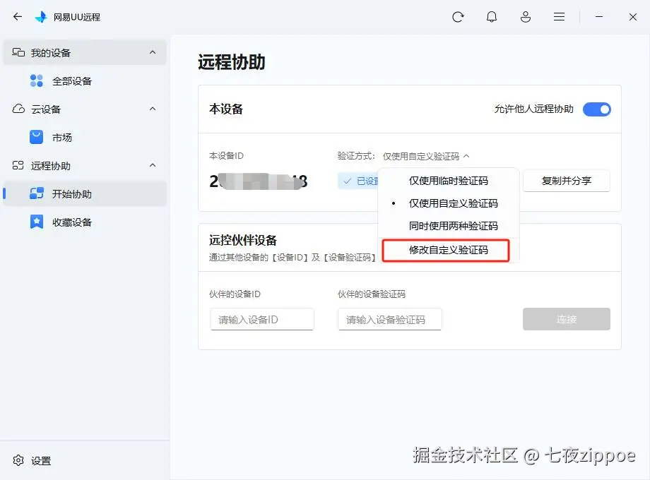UU远程新增了自定义设备验证码功能。这意味着你可以给常用设备设置一个简单好记的“专属密码”。