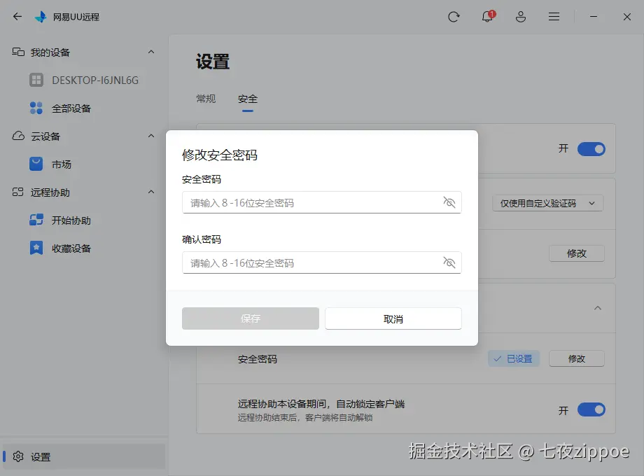 “客户端安全锁”功能,相当于给被控端的UU远程软件界面加了一把“物理锁”。