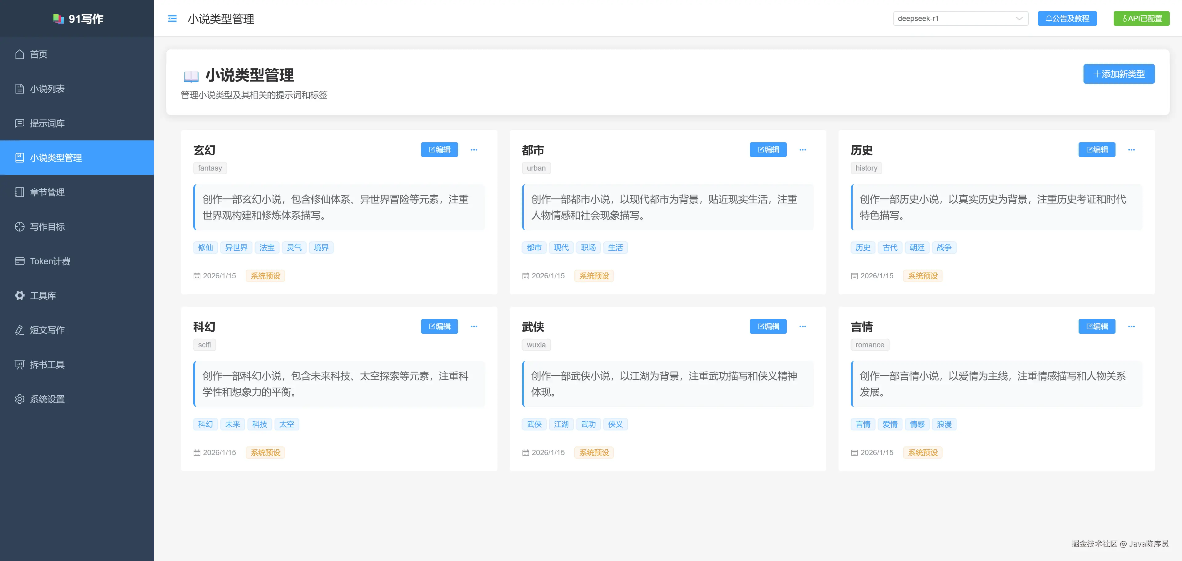 - 小说类型管理
