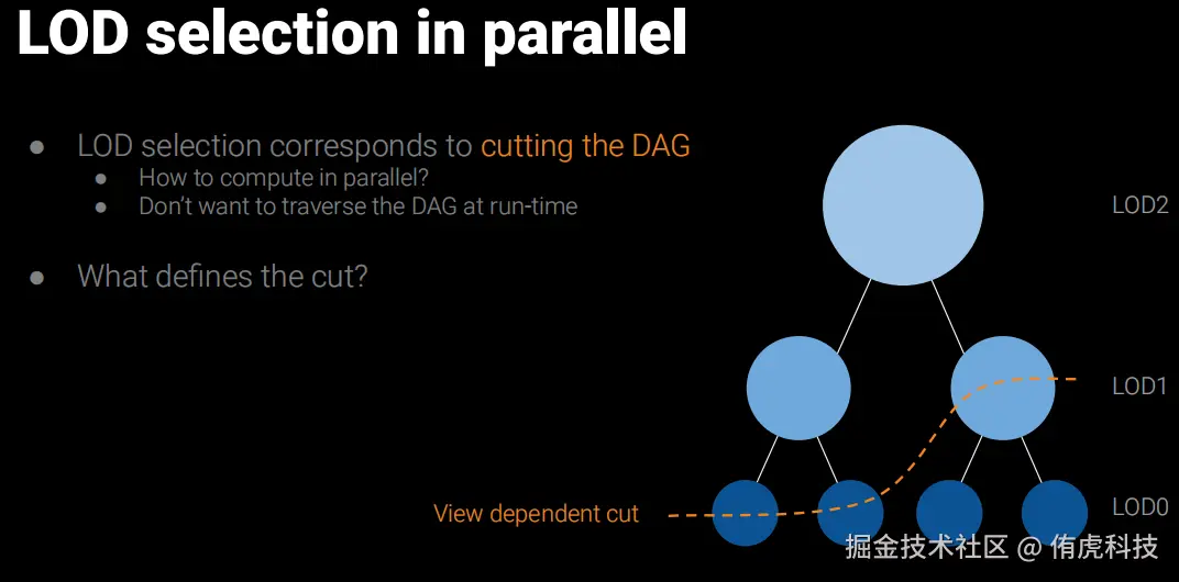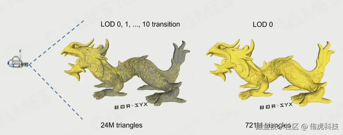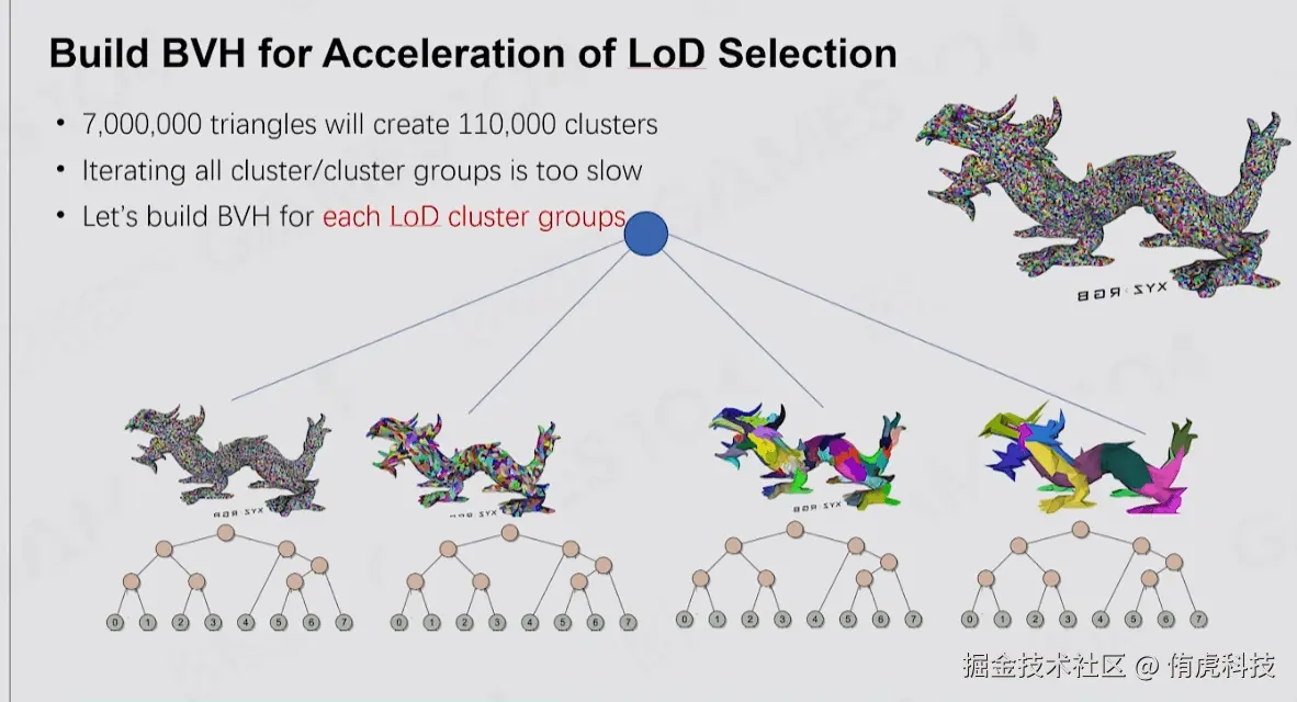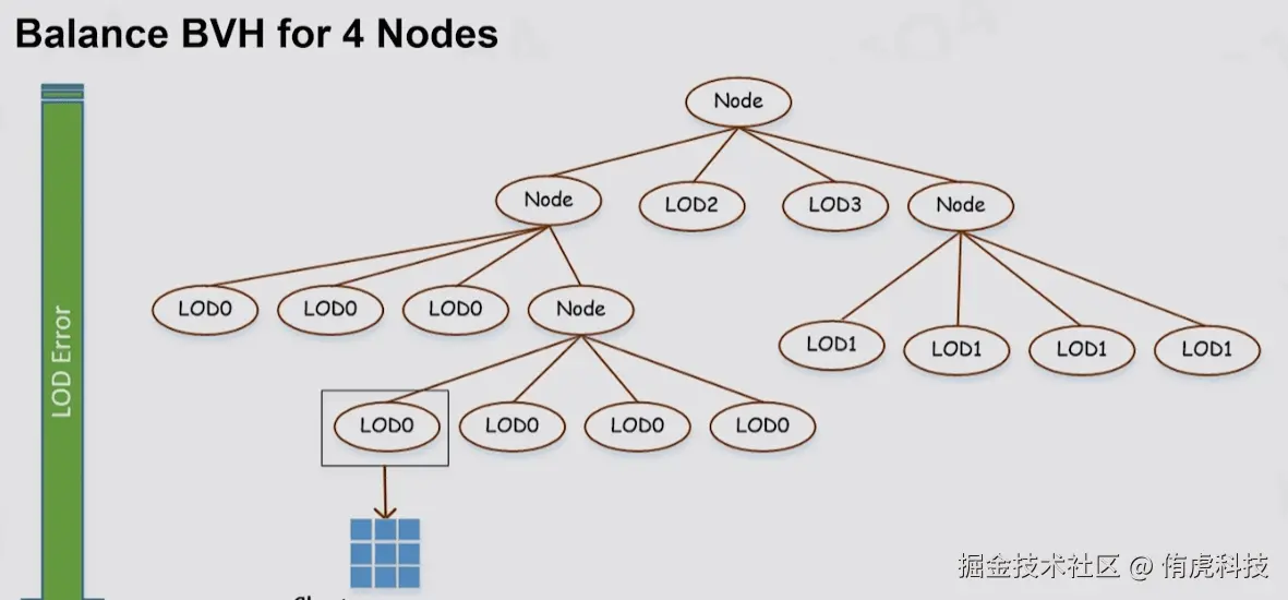 - Auto LOD:通过Graph Partitioning技术划分和简化模型构建LOD,并且把数据组织成BVH结构在Runtime时候可以高效地并行选择LOD,通过这种方式构建的LOD过渡非常丝滑。
