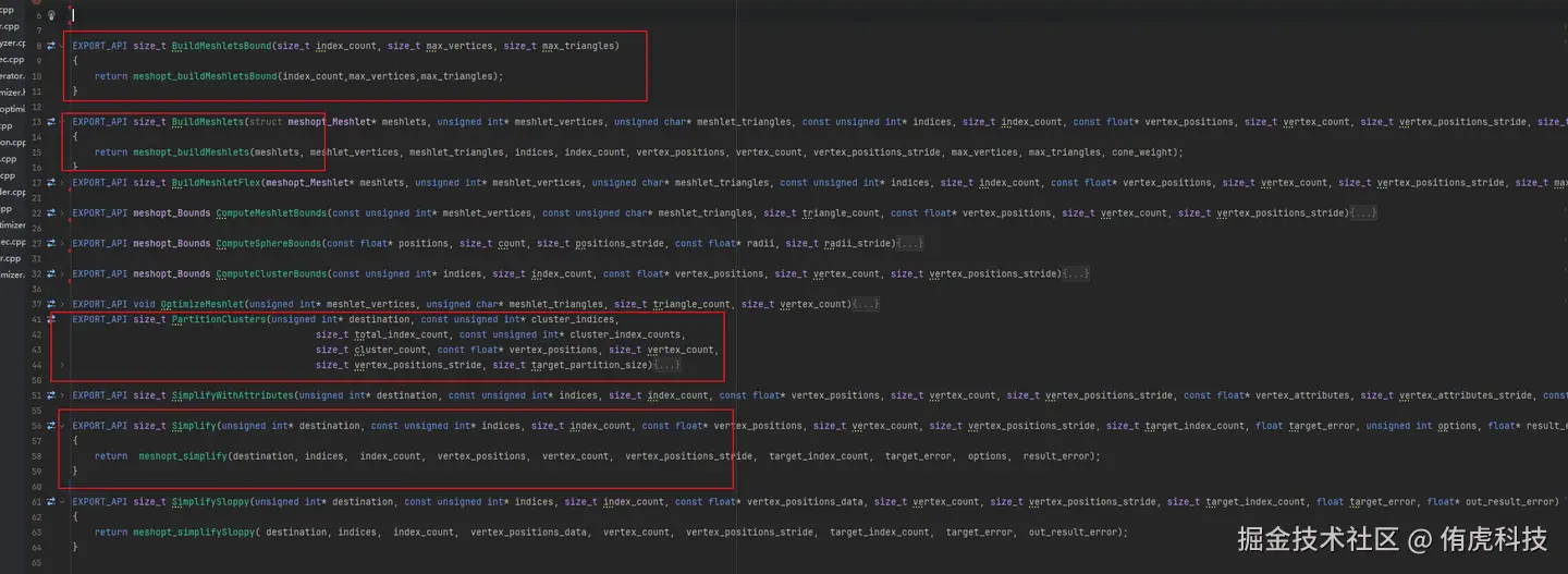 本文使用meshoptimizer实现Mesh的切分Cluster和Partition功能,这个库功能还有优化Over Draw,Shadow Depth Index等功能: