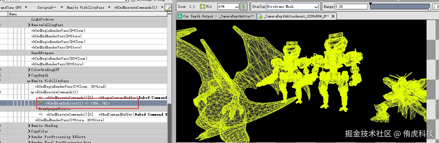 这个得益于GPUDriven的好处,一个DrawProceduralIndirect就可以绘制所有物体了: