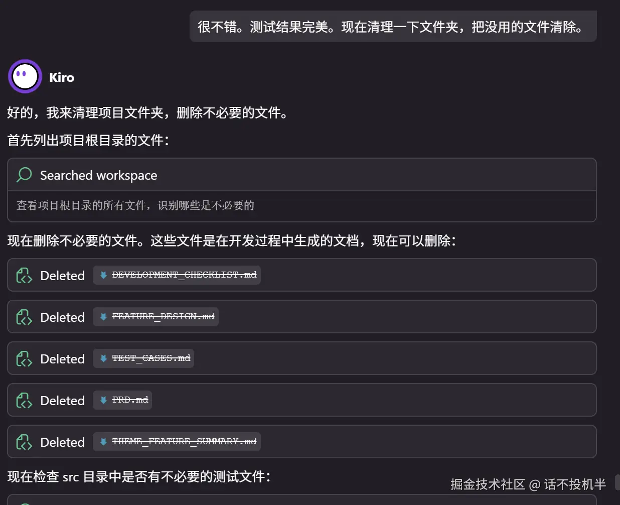 测试正常后,清除不必要的文件,交给kiro自动解决。