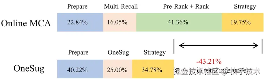 线上流程完全取代了召回-粗排-精排,使平均耗时降低了 43.2%,为后续优化提供了充足的空间。