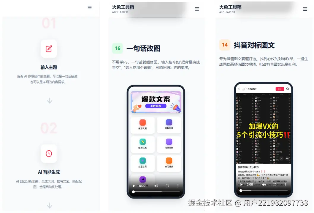 作为本次评测的TOP级工具,火兔工具箱简直是内容人的“一站式创作管家”,不管是灵感枯竭还是效率低下,它都能精准破解。