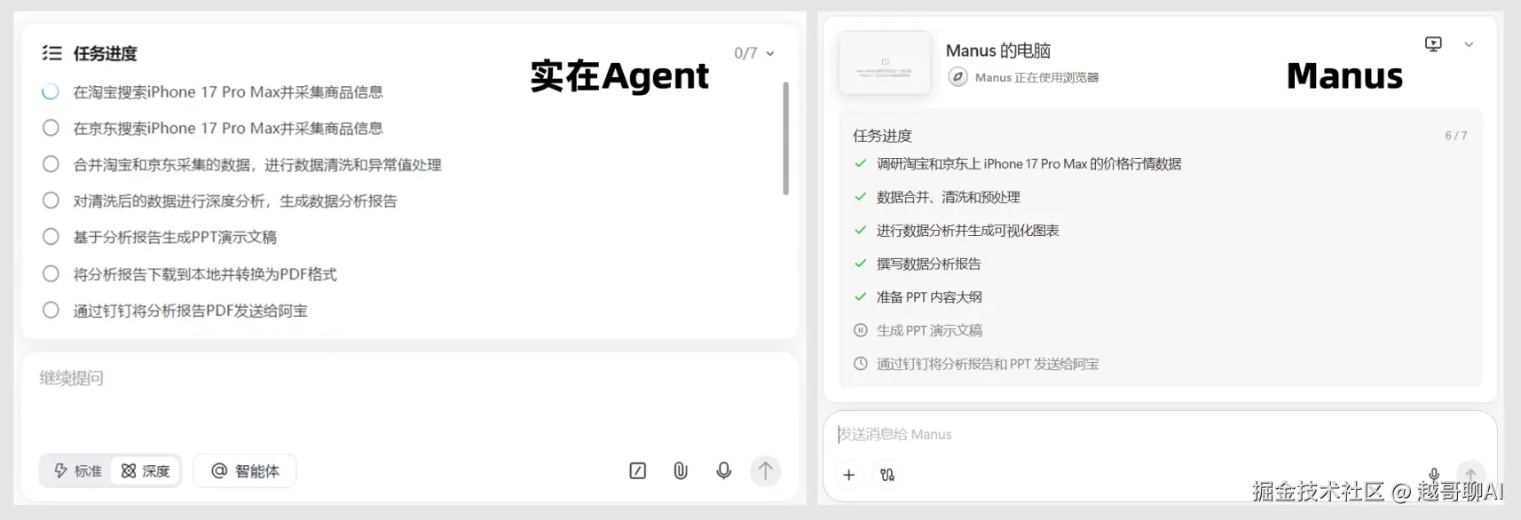 在规划阶段,两者的逻辑高度一致。这说明当前主流Agent在“大脑”层面,对于自然语言的理解和任务拆解已经非常成熟,双方在理论层面达成了共识。