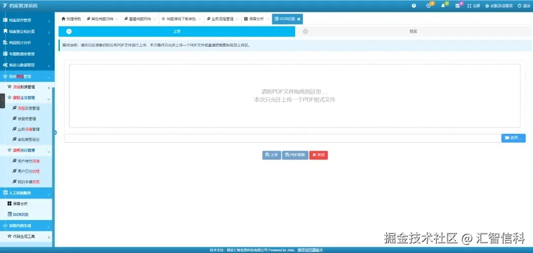 生产档案数字化管理系统主要是对企事业单位中档案信息以及档案文件的完整管控以及流动过程,当整个档案从预归档到正式库归档完成后,也就表示整个档案的生命周期的完成。档案系统按照数字化管理的目标,实现了档案从部门录入以及部门共享、归档、组卷、四性检测、借阅、OCR识别、查询统计等全生命周期的自动化处理。