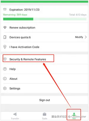 步骤二:在应用程序中点击“我”,然后选择“安全和远程功能”。完成后,开启“桌面通知”功能。