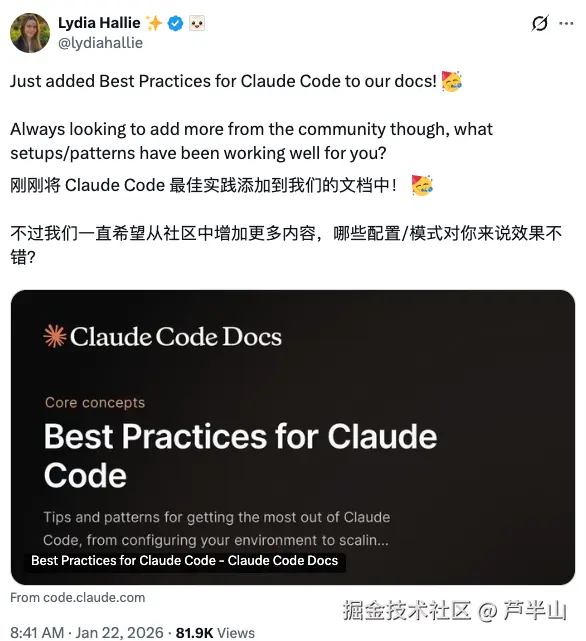 在我学习Vibe Coding的过程中,我依然沿袭着这种方式。即实操业内公认最好的工具Claude Code,以及阅读Anthropic官方的文档来学习工具的使用。当然,我也会看大量的Youtube视频来补充认知,但那更像是一种猎奇。因此,我强烈建议想要学习Vibe Coding的朋友阅读这篇文章:code.claude.com/docs/en/bes…,里面有太多的心得和感悟。