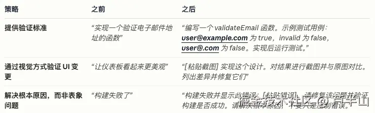 以下是文档中罗列的两种实践方式,后者提供反馈,让Claude Code可以去验证自己输出的结果,因此会明显地提升任务效果。