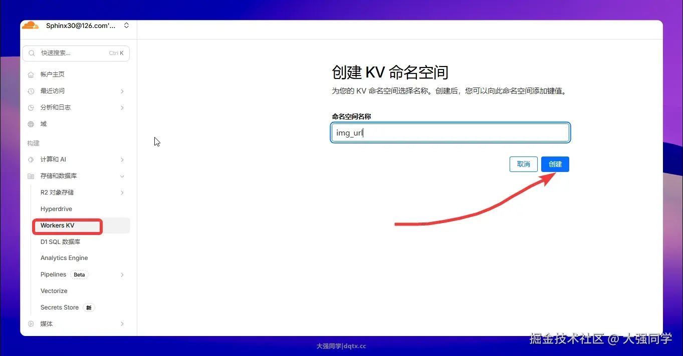 - 进入 Cloudflare「存储和数据库」→「Workers KV」,新建 KV 数据库,名称填