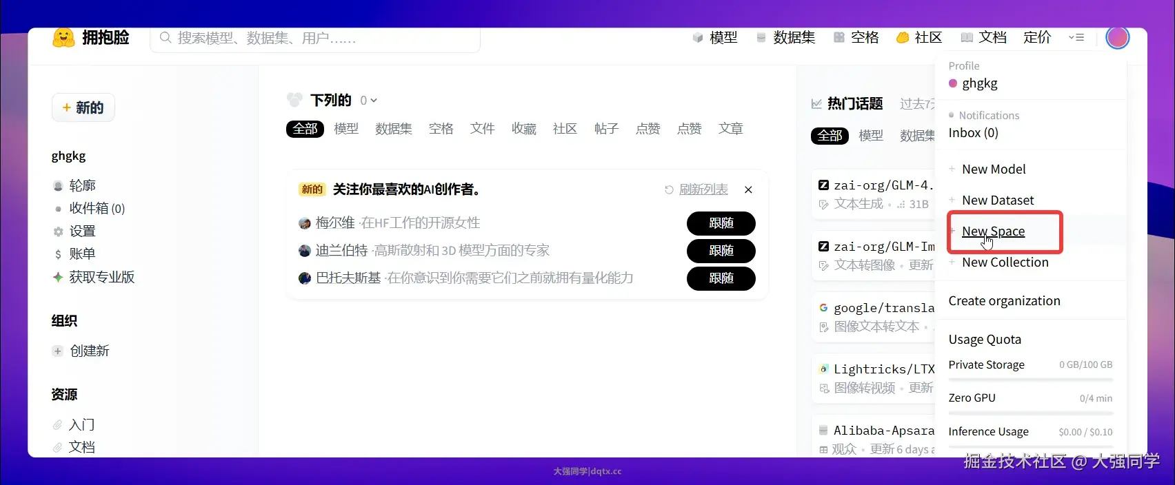 - 免费 100G:用 HuggingFace 空间做存储,无容量费;