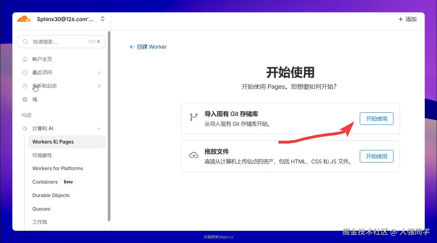 - 登录 Cloudflare,进入「计算和 AI」→「Workers and Pages」;