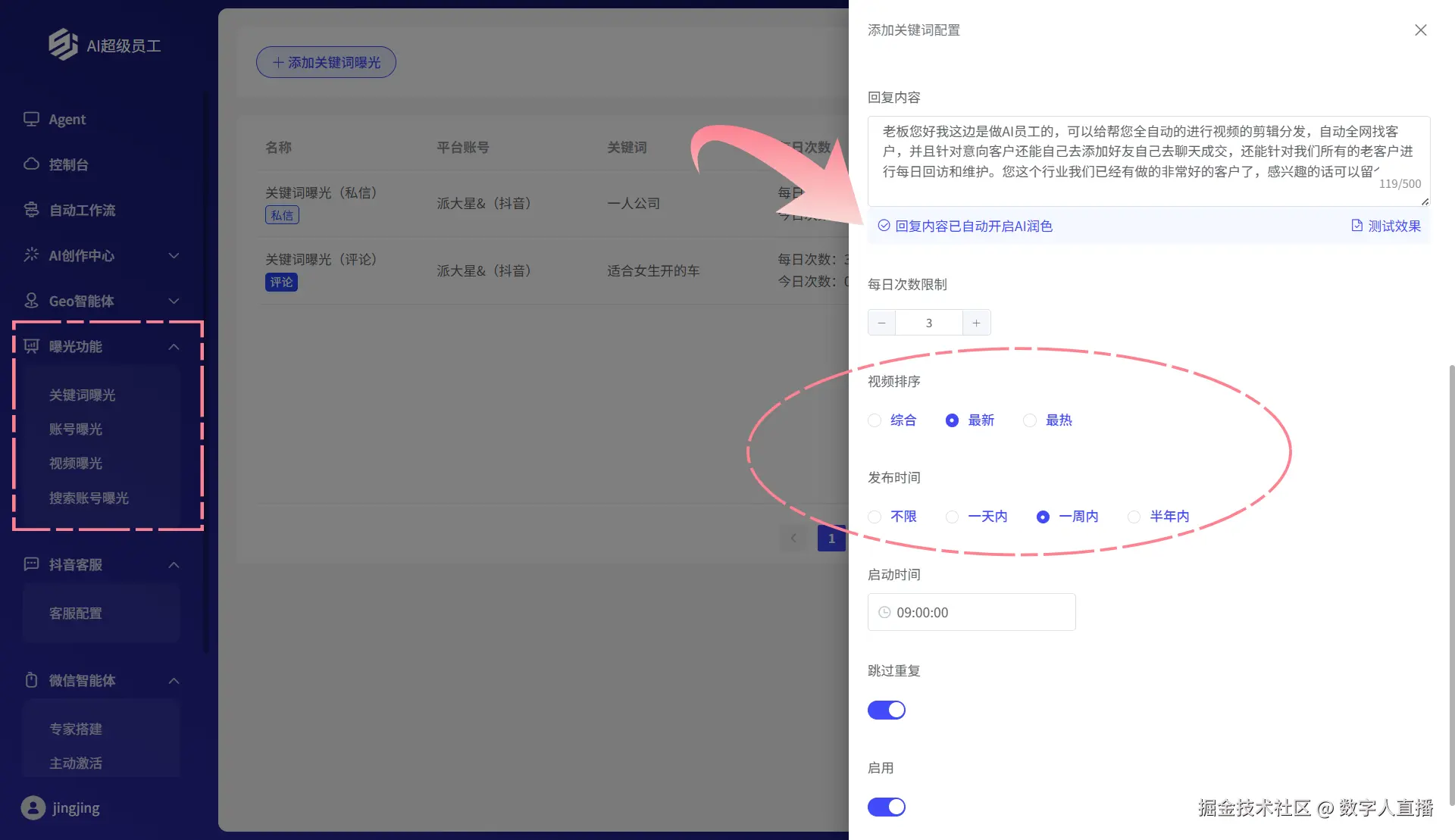 自动化主动触达:自动发起私信、评论互动,无需人工蹲点值守,24小时不间断触达潜在客户,大幅提升沟通效率。