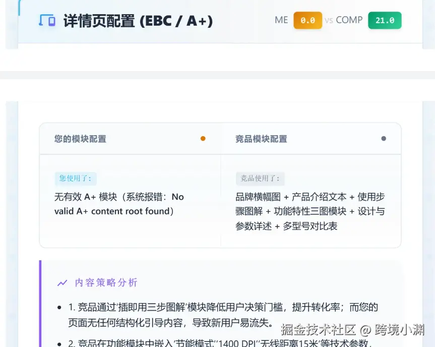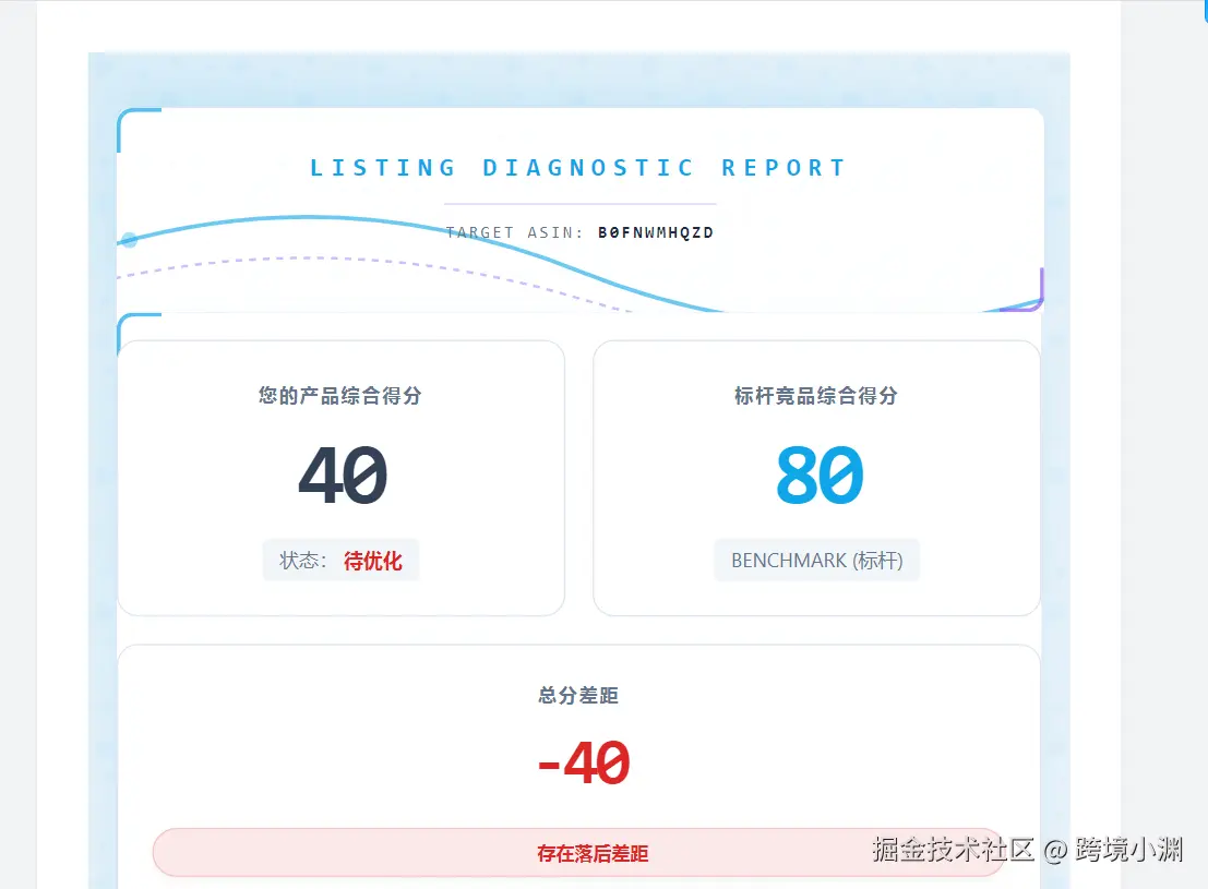 案例中,卖家Listing 40 分 VS 竞品 80 分,40 分差距源于各维度细节失守。
