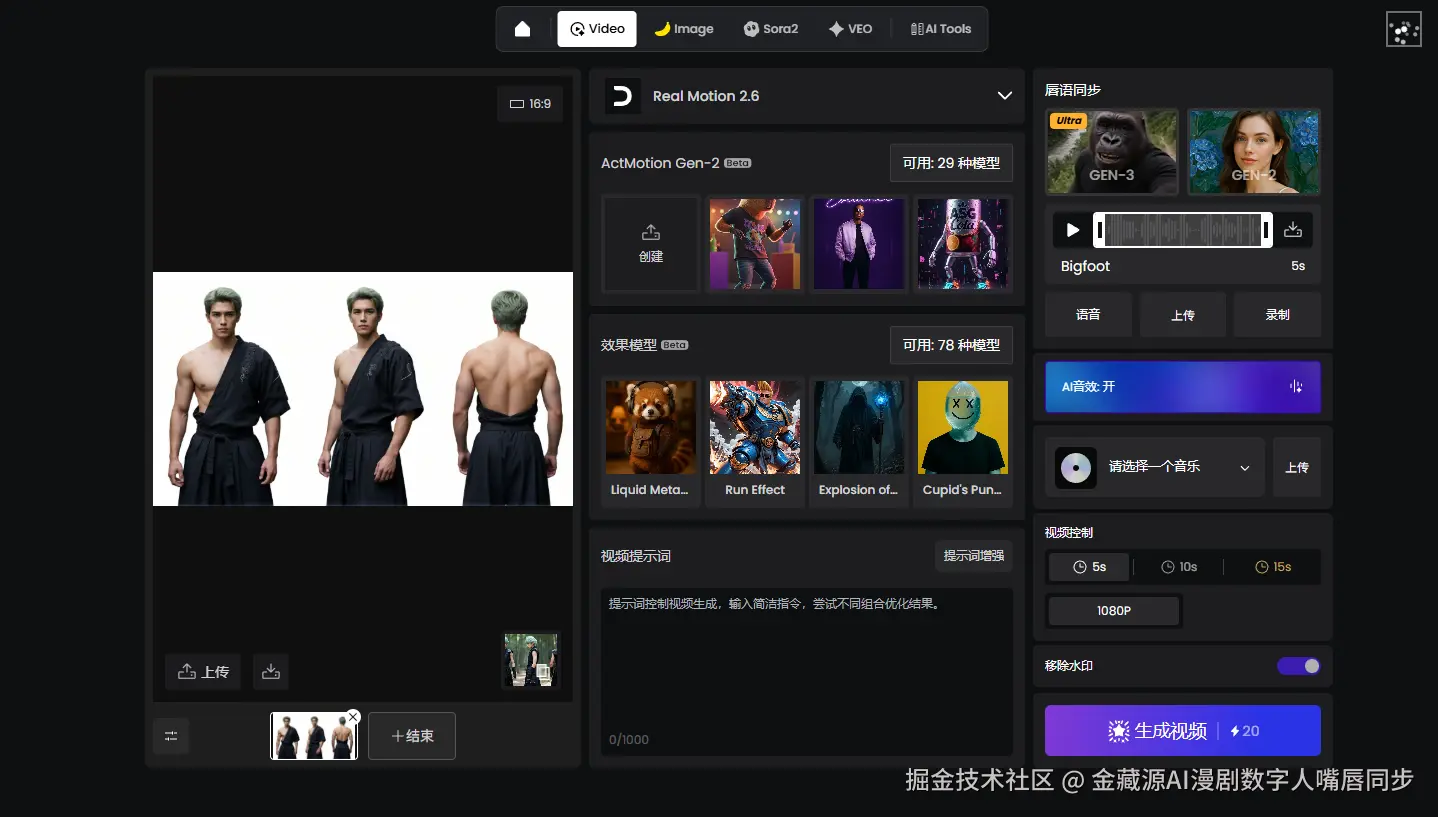 普通创作者不需要再:导剪映 → 加关键帧 → 对齐节奏,一个平台就能跑完整流程。