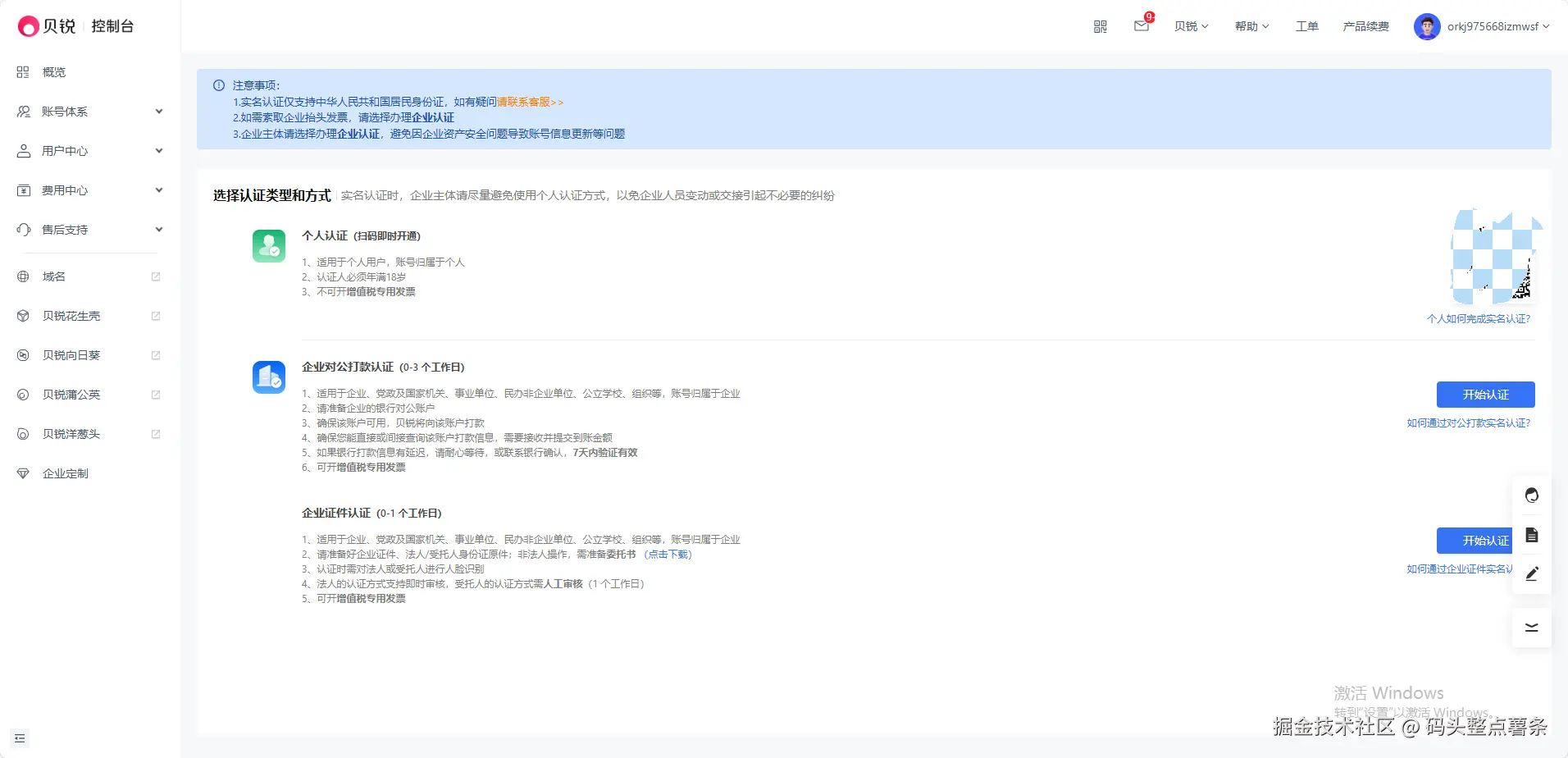 在用户登录后未实名认证需要先实名认证,点击下方链接进行跳转到网页后,用手机扫码验证**(需要身份证正反面照片及人脸认证)**