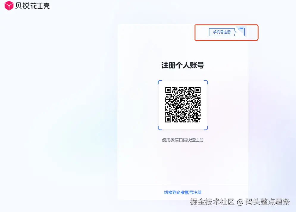根据自身情况微信扫码注册或者输入自己的手机号进行获取验证码