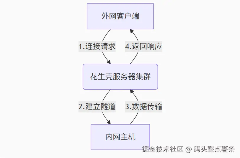 内网穿透技术的核心是突破 NAT 隔离,通过在外网建立与内网设备的关联通道,实现外网对内部设备的访问。以花生壳为例,其通过 “服务端 + 客户端” 的配合实现这一过程: