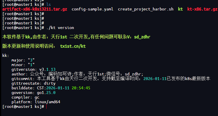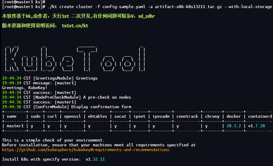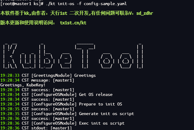 该命令kt会根据配置文件自动判断操作系统和架构以完成所有节点的初始化配置和依赖安装。