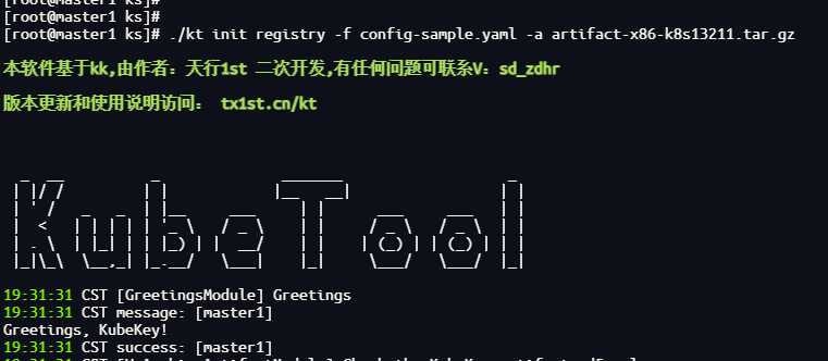./kt init registry -f config-sample.yaml -a artifact-x86-k8s13211.tar.gz