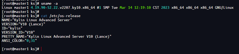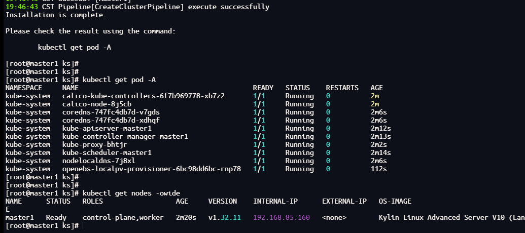 | master | x86_64 | 麒麟V10 | 2核4G | 192.168.85.153 |
