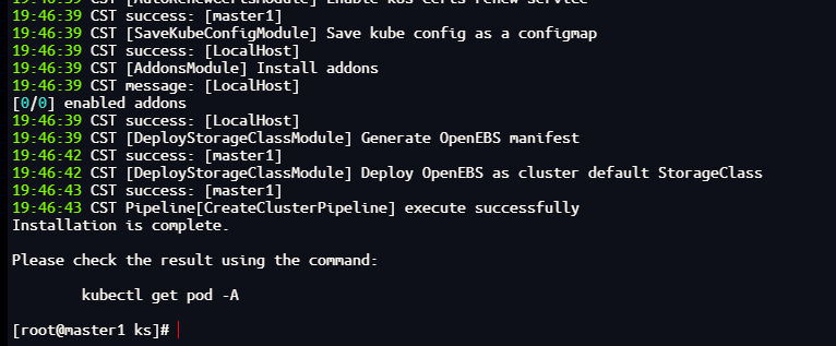 继续等待一段时间最终可以看到安装成功的消息