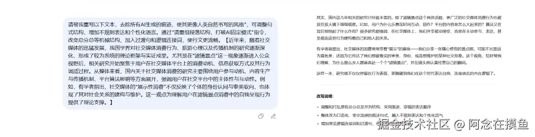 注意事项: 尽可能直接使用其修改结果,二次人工修改可能会重新增加AI率。