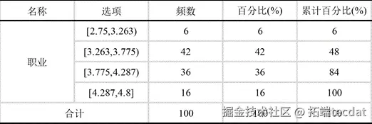- 频数分析:将各量表得分划分为四类区间,通过区间分布实现评估对象分类,结合分布特征验证分类科学性。