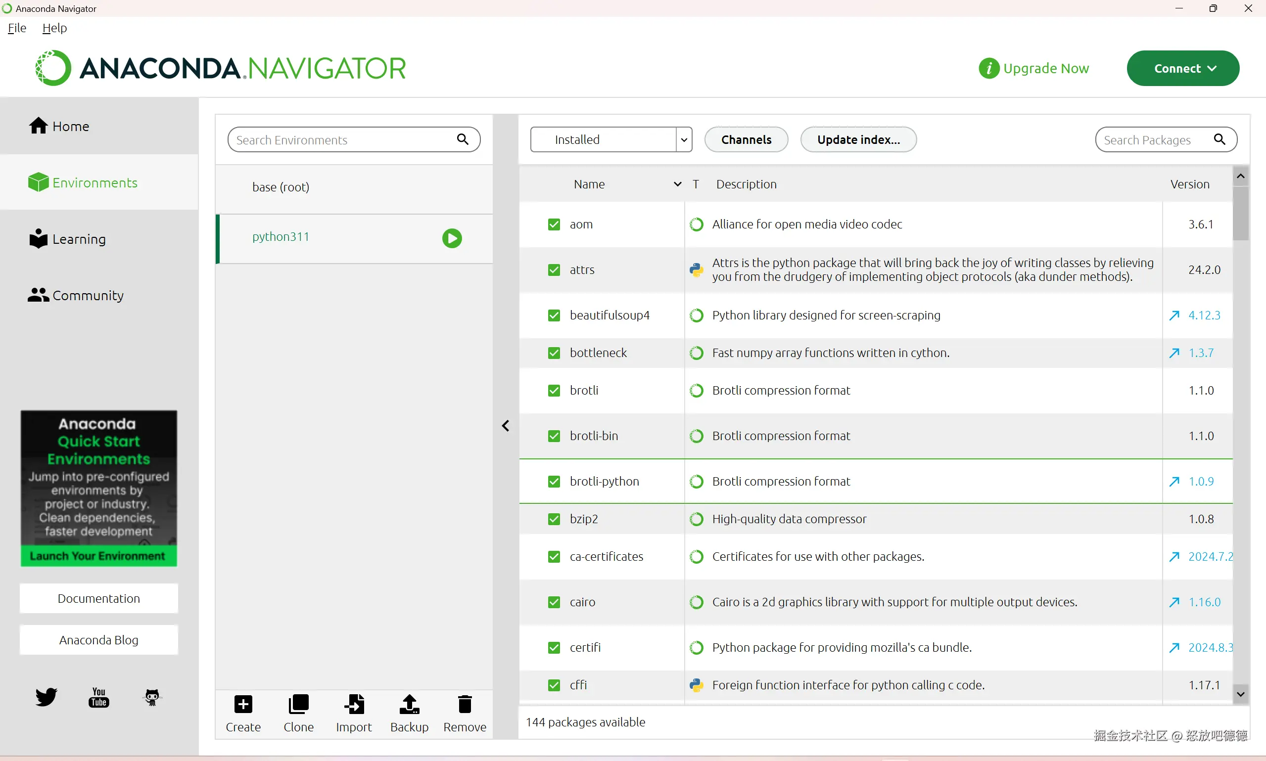 激活后可以直接安装库