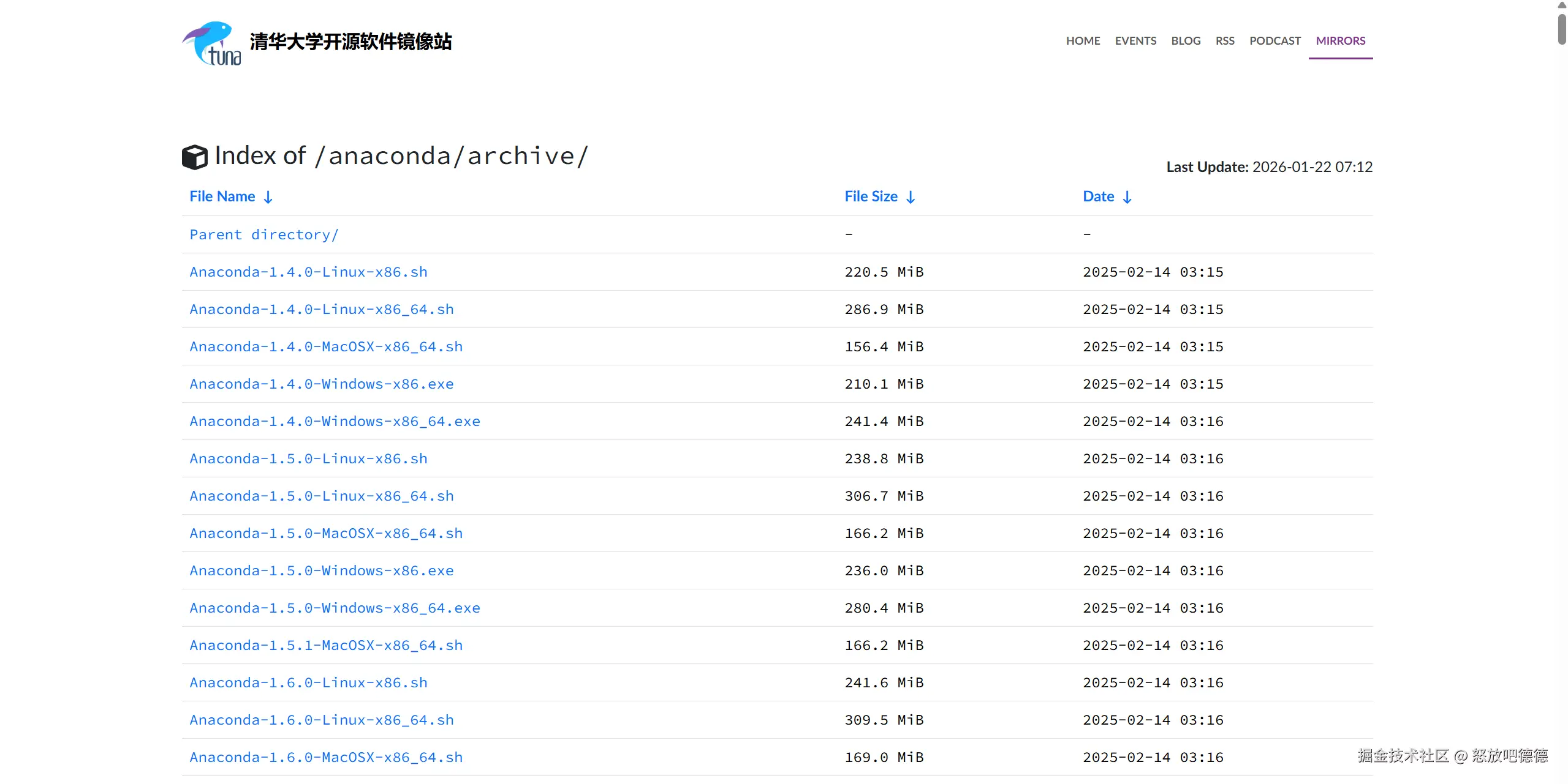 2、到清华大学开源软件镜像站下载:Index of /anaconda/archive/ | 清华大学开源软件镜像站 | Tsinghua Open Source Mirror