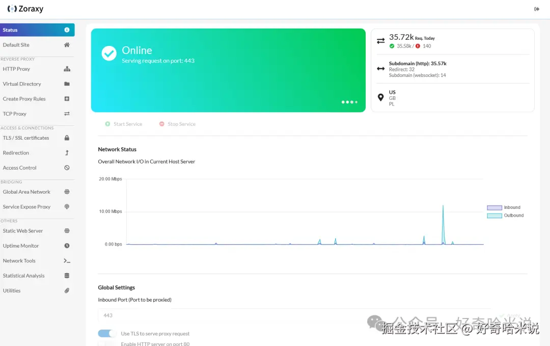 Zoraxy是一款基于 go 编写的动态反向代理工具。