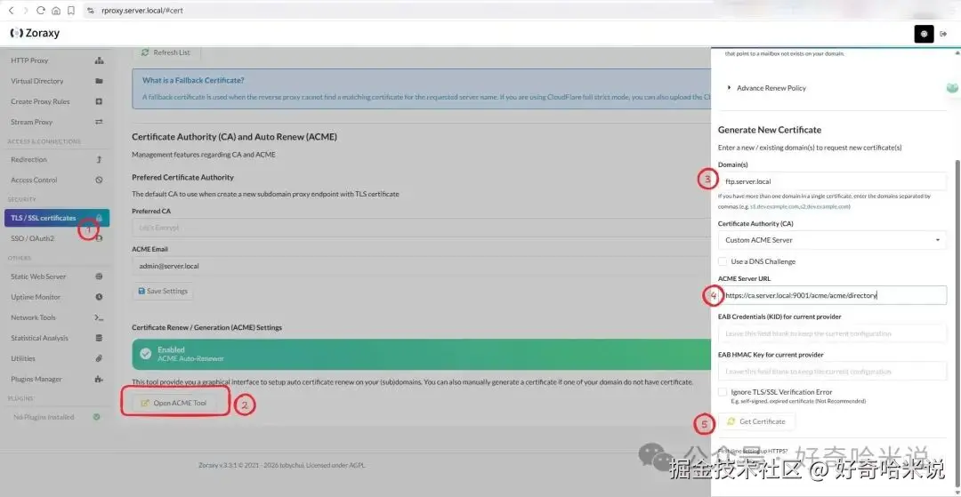 Zoraxy内置 ACME客户端功能,支持Let's Encrypt 等服务商证书的自动申请:证书自动续期,不用担心过期。