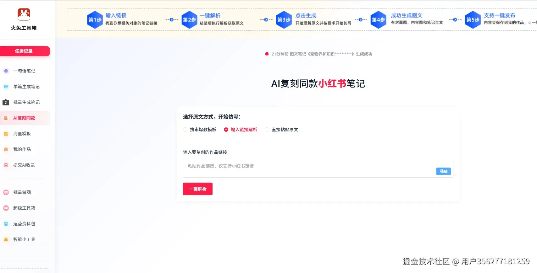 很多人做高跟鞋账号凭感觉选题,今天发细跟通勤款,明天发粗跟老爹鞋,内容杂乱无章,自然吸引不到精准粉丝。正确做法是先锁定爆款方向,再针对性创作,这一步火兔工具箱能帮你快速落地。作为全能内容创作助手,它的一键采集爆款功能的实用性,在20多个账号的起号过程中被反复验证。