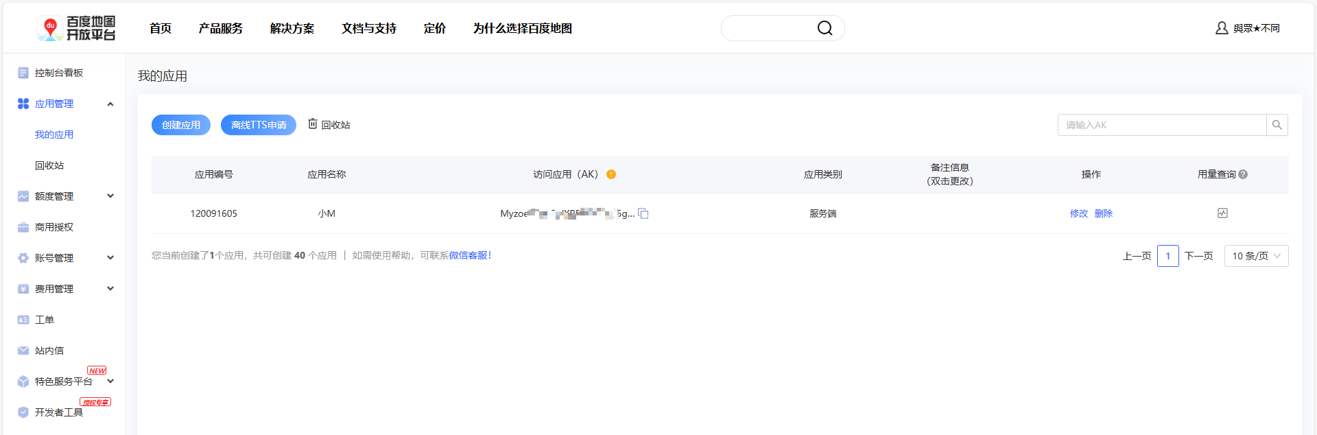 步骤:通过百度地图开放平台 --> 控制台 --> 应用管理 --> 我的应用 --> 创建应用